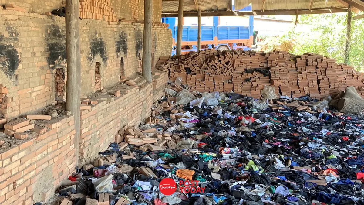 ขยะจากเสื้อผ้าแบรนด์ดังถูกใช้เป็นเชื้อเพลิงในโรงงานอิฐกัมพูชา